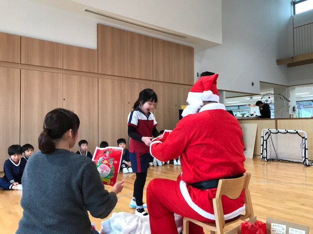 真っ赤な洋服、白いひげ。小さいクラスの子どもたちは、このインパクトの